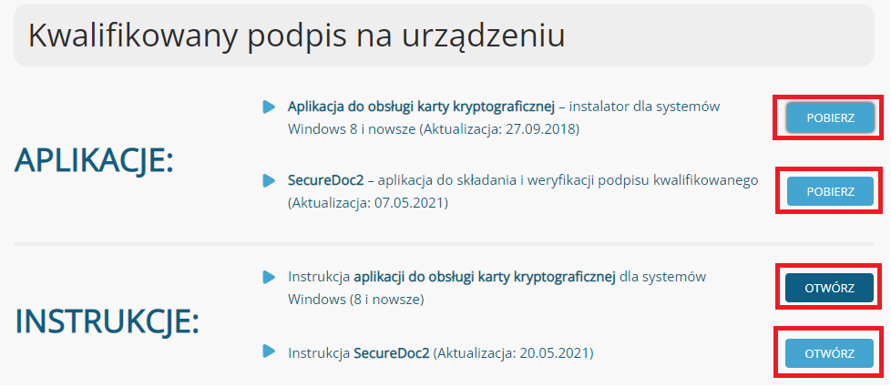 - Aplikacja SecureDoc 2.0 - do podpisywania i weryfikacji dokumentów